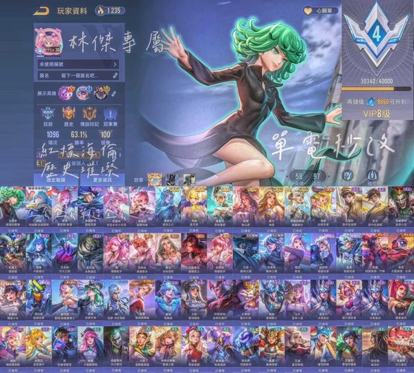 【Garena帳有綁定、璀璨傳說、V8、66英、110造】傳說女用號多女角造型全服海倫可議價