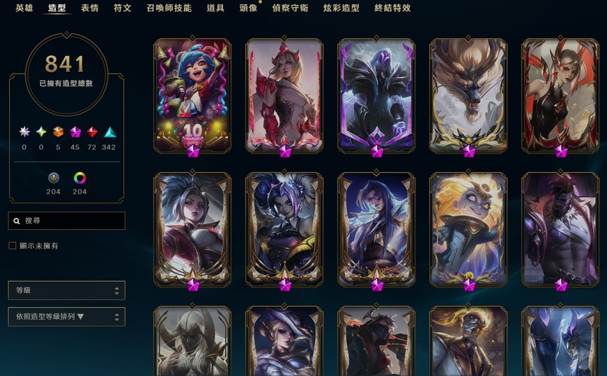 L03:1868造型 5非凡 150神話 46神話棋手15棋盤 faker uzi簽名板 剩餘3161造型碎片 65000實收