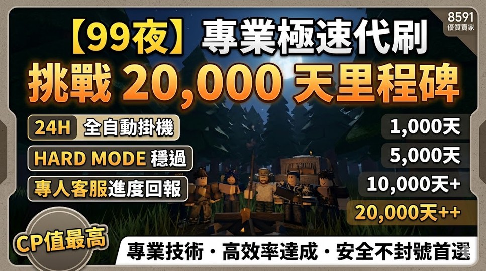 ⚡️【99夜】極速代刷・全自動生存里程碑 ⚡️ 24H 不間斷代打