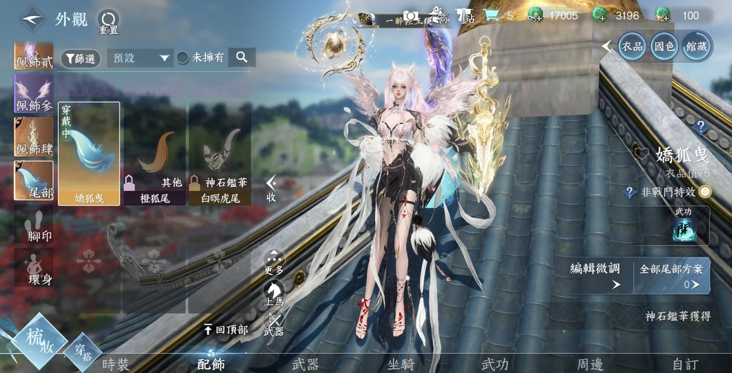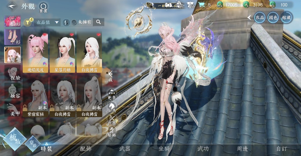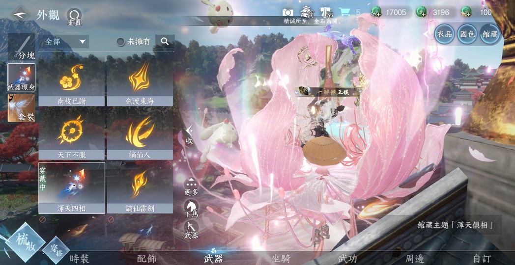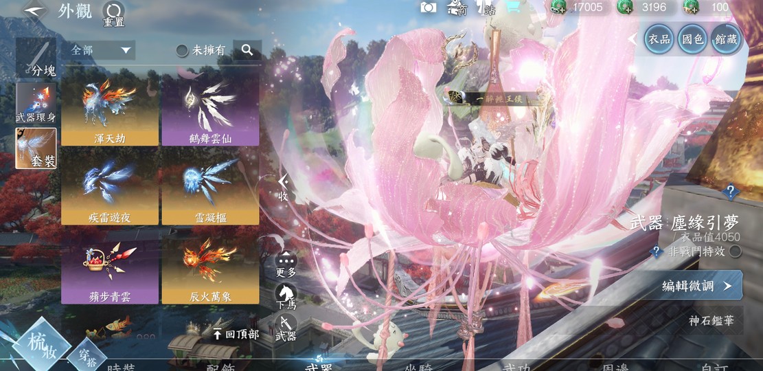 衣櫃深度: 精選 100 套+ 時裝,搭配各種珍稀外觀按鍵(長鯨天斗、金剛明王、千重焰、赤凰重明、軒轅劍、青丘雪)與御劍輕功。