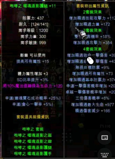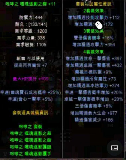 (盔+9無幸/+11鎧幸運/+11手幸運/+11腿完美屬)