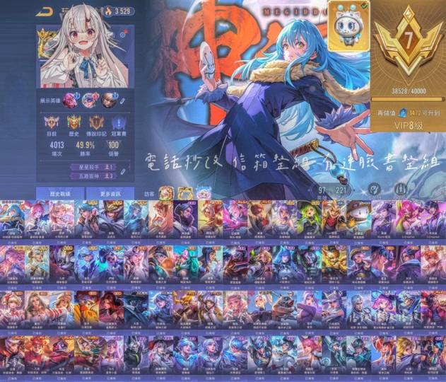 【Garena帳有綁定、先鋒傳說·光影、V7、97英、221造】利姆路 蜜莉姆 落雪白狼 白虎志 浮光 星際 閑雲 外送五階 深海 輝光 百相
