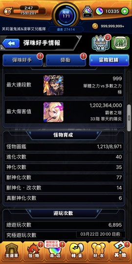 A.是的,純手工帳號。請見截圖,彈珠好手情報有最大傷害值,數值正常,無外掛修改傷害。