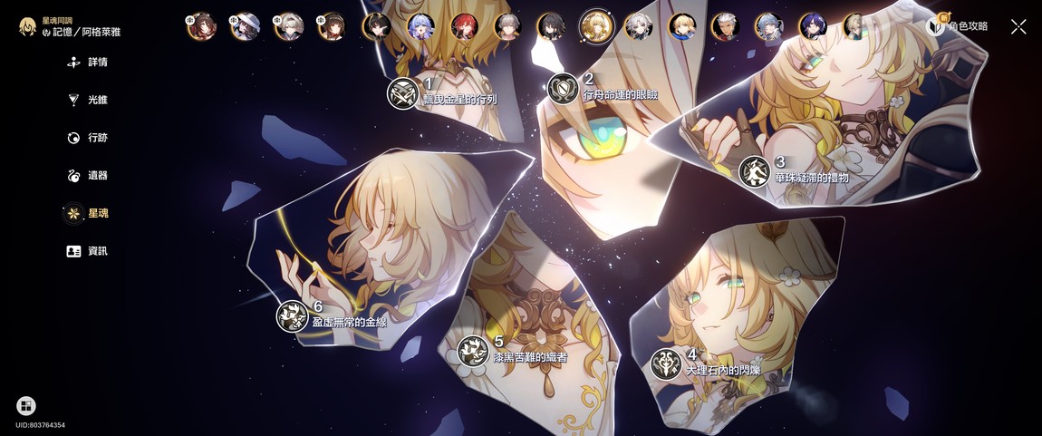 【男、70等、34金角、7金專】61阿格萊雅 21流螢11大麗花靈砂忘歸11saber11紅a連動原神絕區零