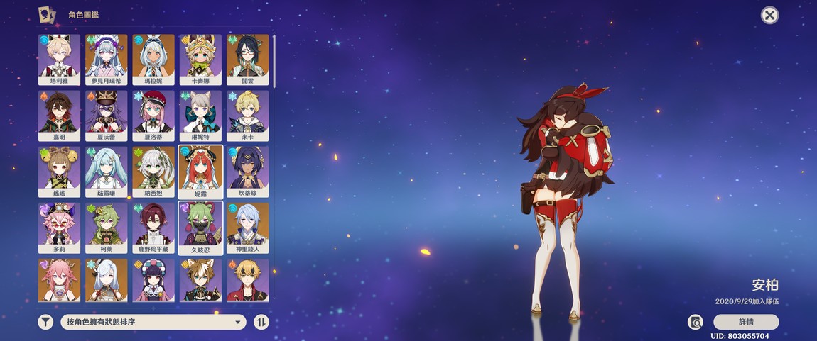 原神21雷神11胡桃11申鶴岩神草神風神萬葉神里兄妹02甘雨02魈01瑪拉尼01尼露01八重 心海閒雲優菈可莉夢見月2命琴3命迪盧克三命莫娜共40金左右。