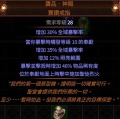 PoE👍傳奇→贗品.神賜 寶鑽戒指 ( 暴擊觸發等級10奉獻、聖徒烈火 )