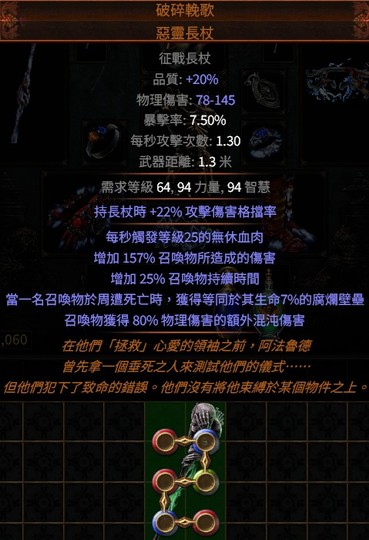 PoE👍6L傳奇→破碎輓歌.惡靈長杖 (召喚獲得等同於其生命腐爛壁壘、無休血肉