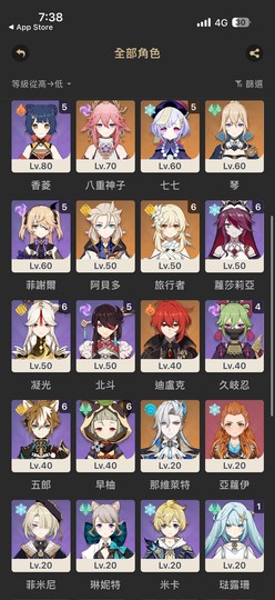 【女、70等、27金角、10金專】崩鐵、原神 都是老角色 便宜出