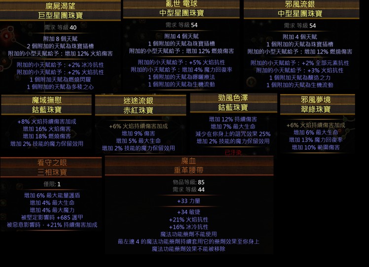 整套含裝備 天賦 技能 珠寶 藥劑 POB