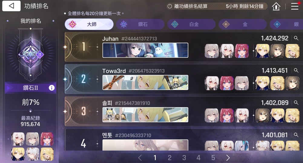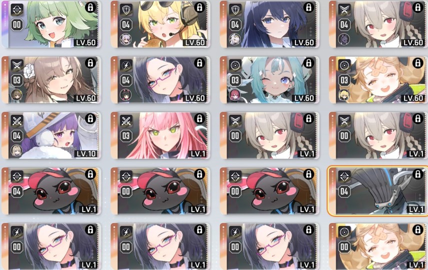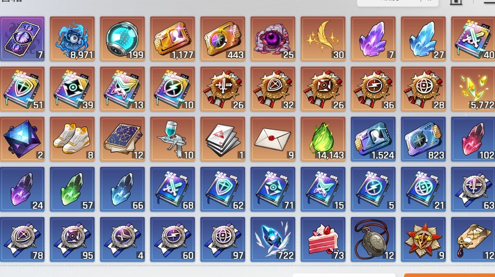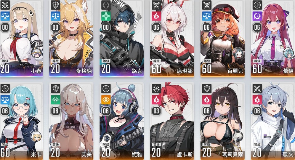 2. 主力角之存檔、潛力、記憶碎片幾乎均已高練度。