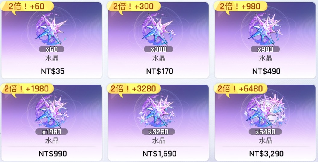4. 開服無課號,所有限定禮包水晶加倍都沒買過均可購買。