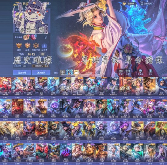 【Garena帳有綁定、戰場傳說、V7、120英、280造】小丑女 櫻吹雪 鏡花 白虎 捷星 新年 蓮花 熹妃 浮生 多限定多英雄 歷史璀璨