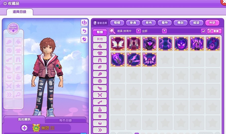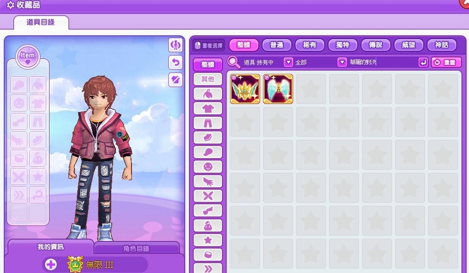重點裝備 齊七大罪 水晶翅膀 華麗桂冠 華麗翅膀 公會獎杯翅膀 骷髏冠 藍吉他 跑之獎盃翅膀 銀製桂冠 綠桂冠 火焰系列齊 等⋯ 裝備眾多 有問題直接私訊