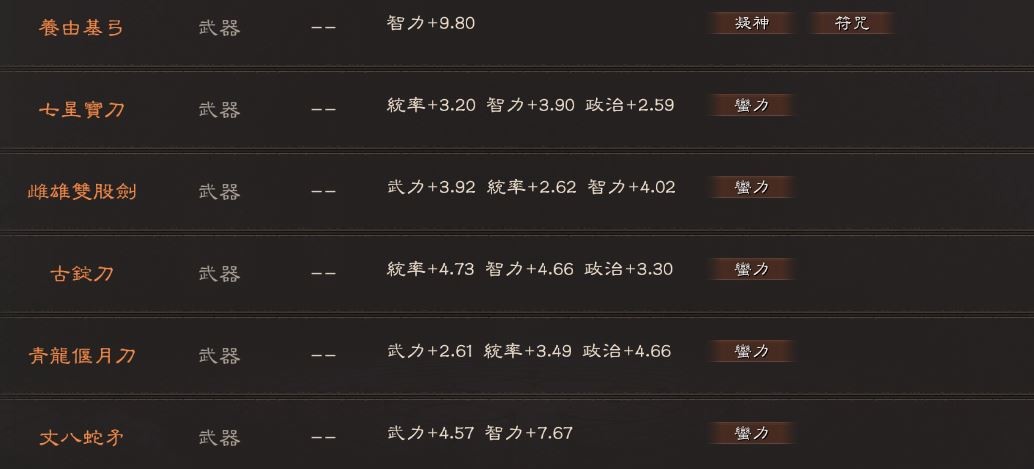 武器:雄烈,2武聖,無雙,天公,3凝神,2妖氣