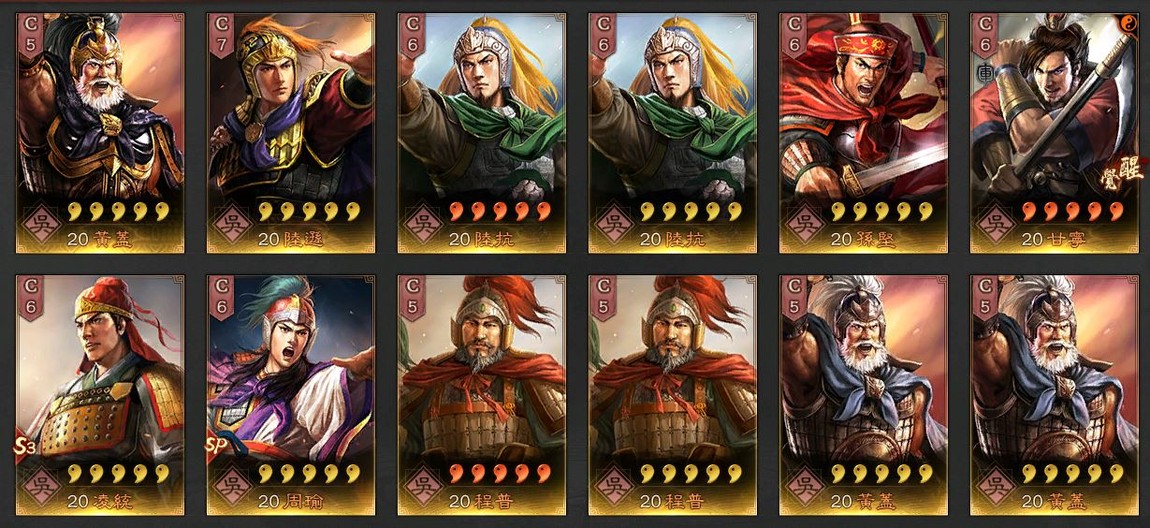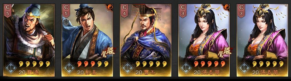 動態武將:張遼、sp袁、司馬、老周瑜、王元姬