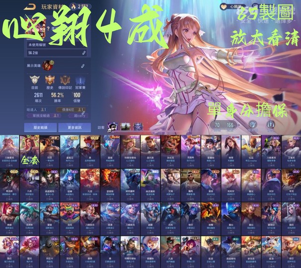 【Garena帳有綁定、黃金、V7、71英、166造】亞絲娜二代 葉娜性感全套