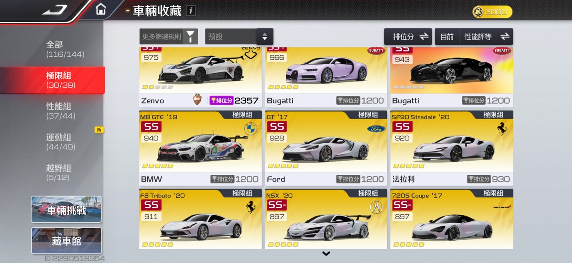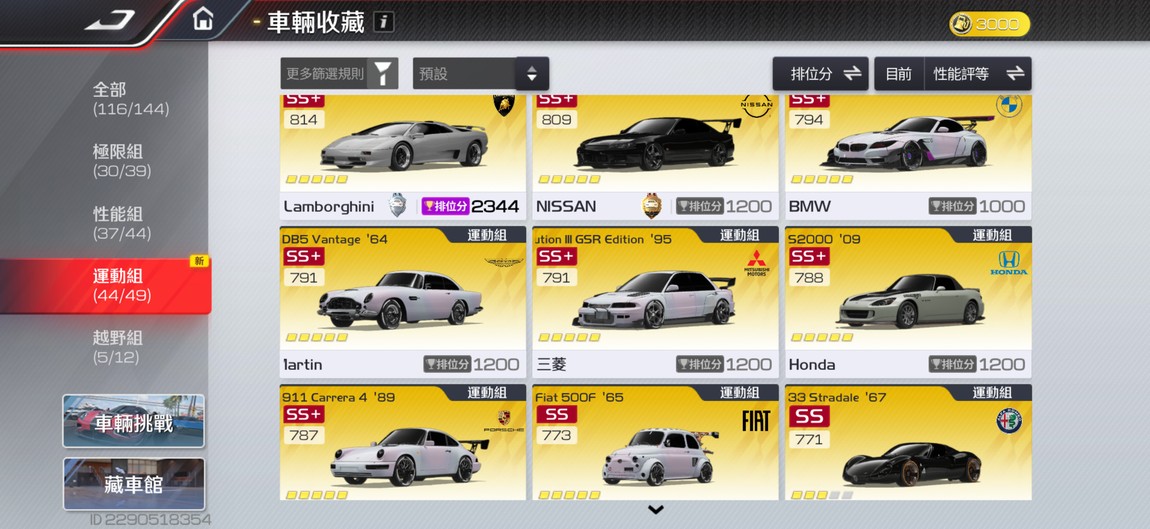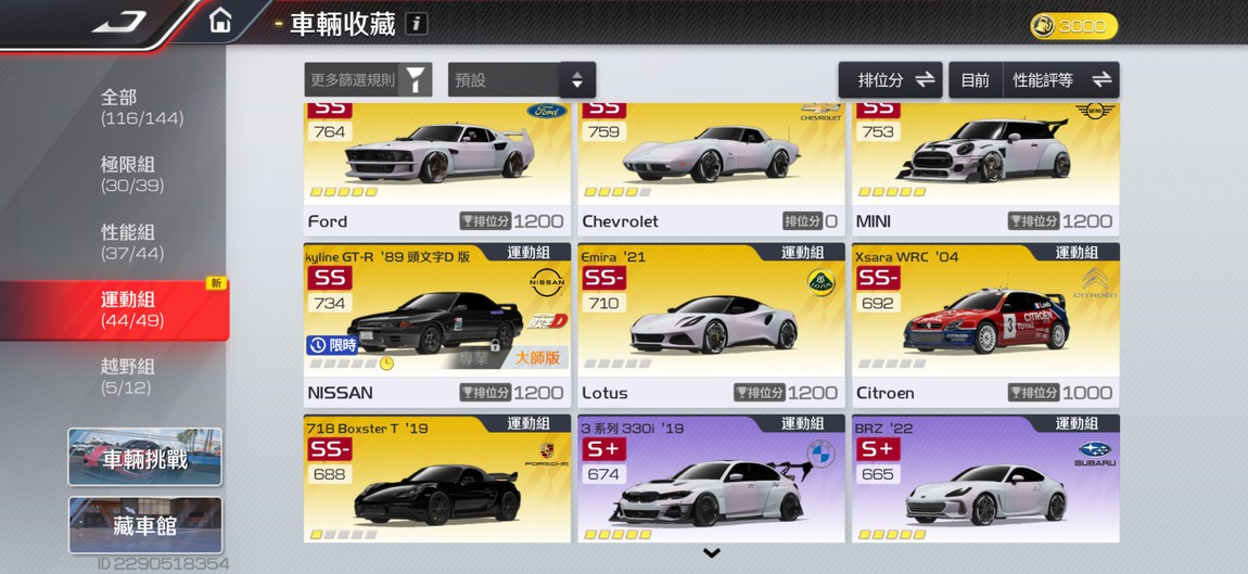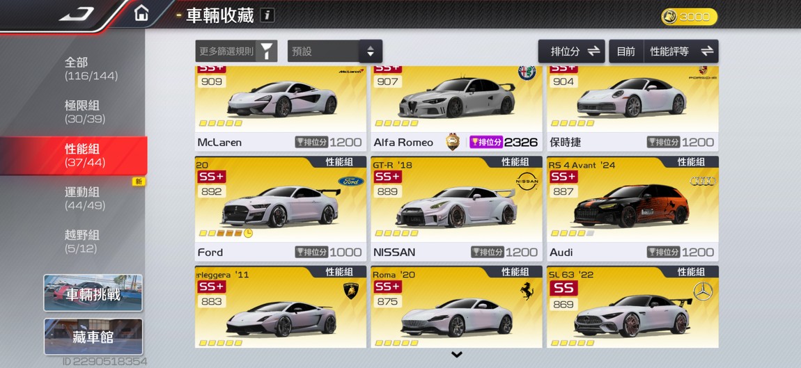 【99等】同價位最頂帳號 輕鬆前百 每組皆有九台分車 有興趣都可以談👌🏻