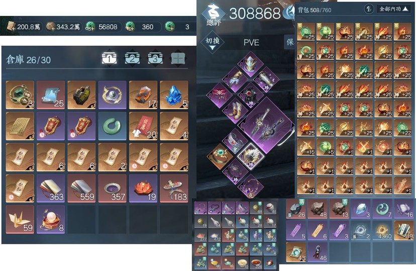 累儲87040紋玉、綁玉56808(限定紋玉額度已轉完)、銅幣343.2w、群俠帖120張左右