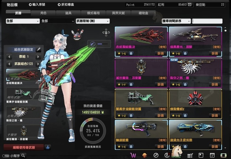 【4史詩武器、30王牌武器、6王牌角色】急售可議價 赤焰聚能裁決 芬里爾 史詩斧ex 兔神ex碧藍羽翼 輪迴脈衝