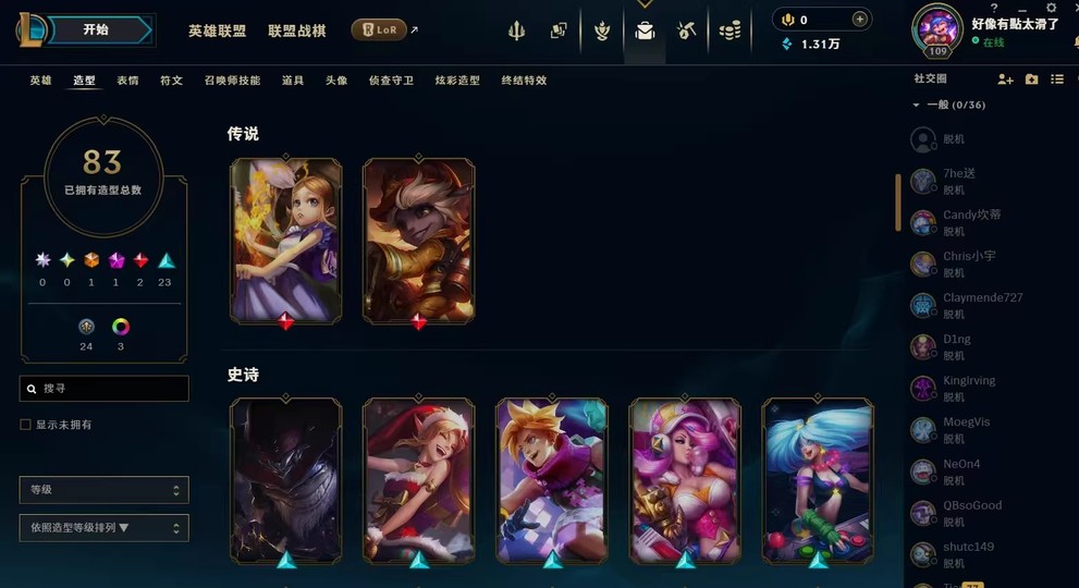 英雄聯盟台區lol台服83皮膚64英雄LOL台服【未綁信箱】