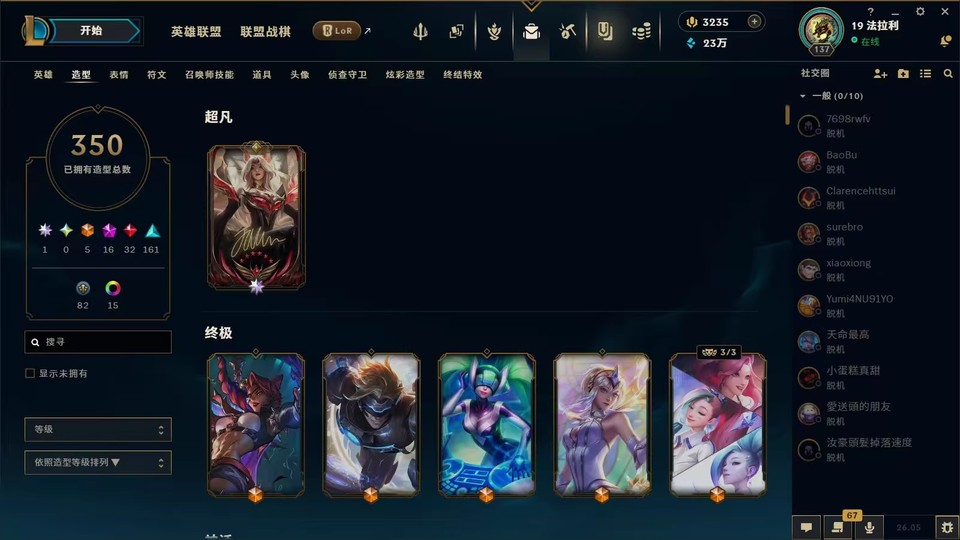 自帶3235點券,可直接轉區,下棋號,皮膚質量很好