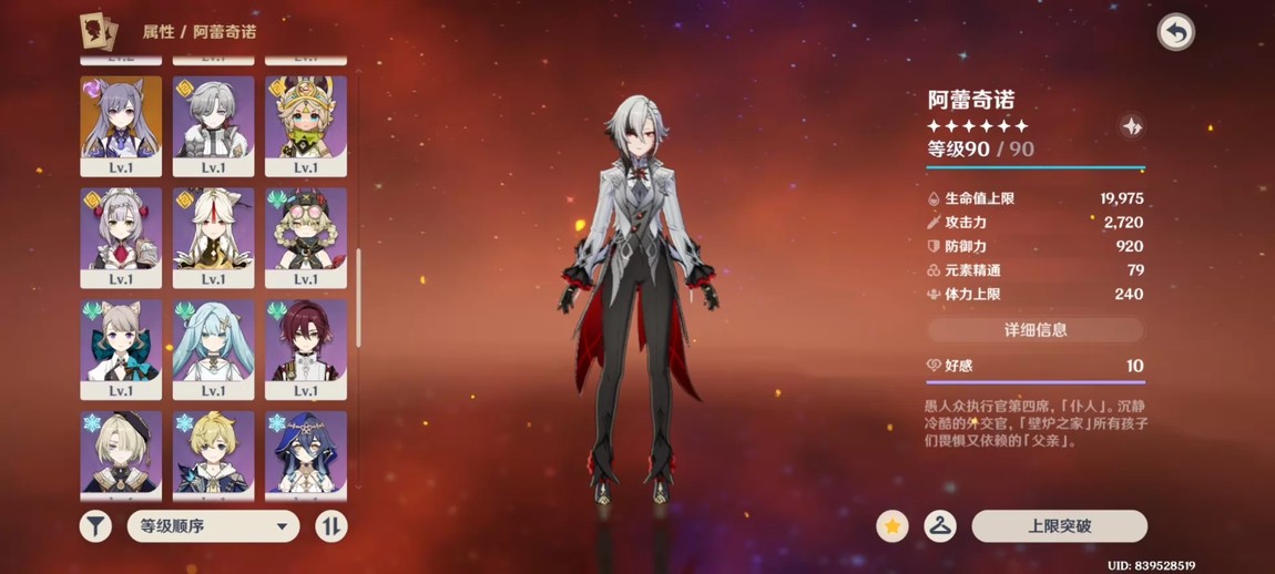 原神國際服亞服 1+1阿蕾奇諾有練度配隊完整,0+1雷電將軍雅維埃,00菲林斯,專武池子墊了60抽,可抽菲林斯專武,活動都沒做,劇情到第四章