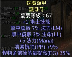 S13天梯【術士雙吸項鍊】【+2技/7%吸法/3%吸血/毒抗打錢】護身符