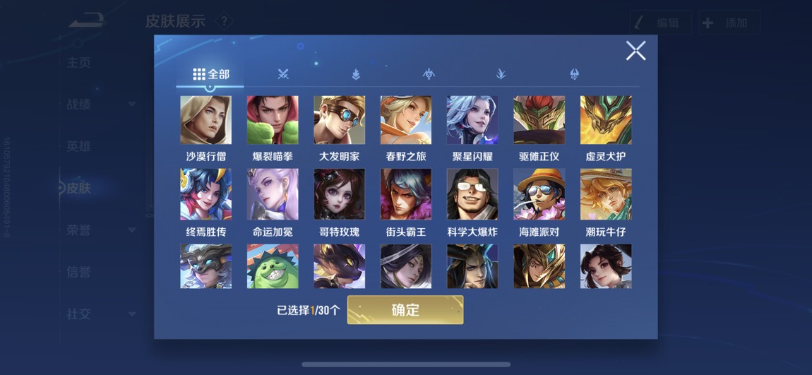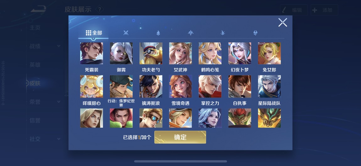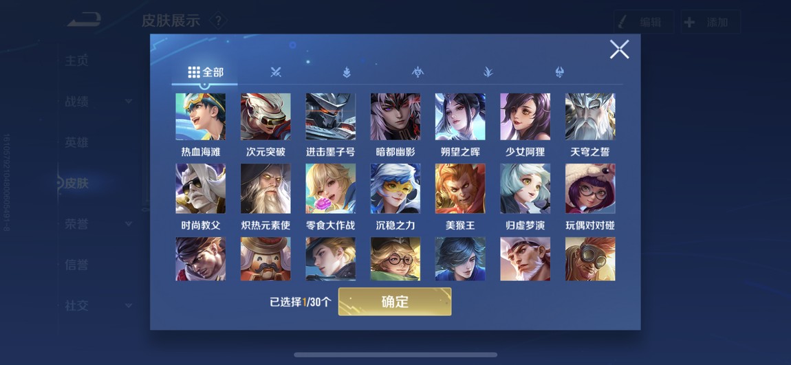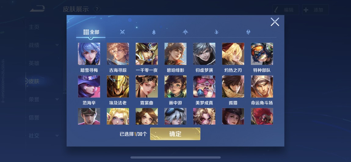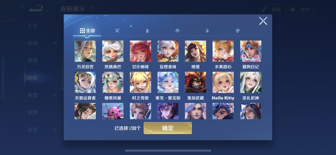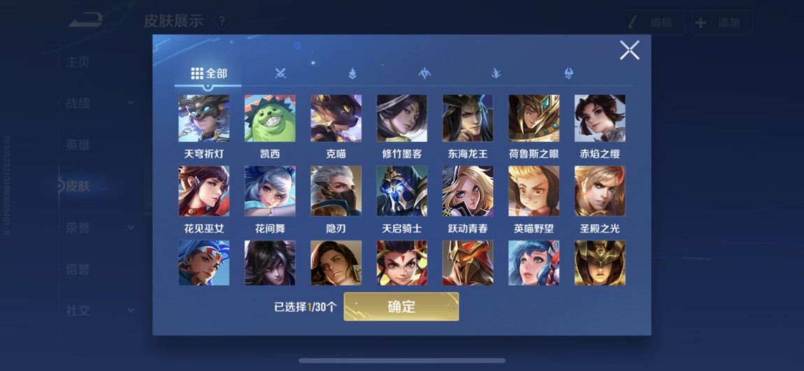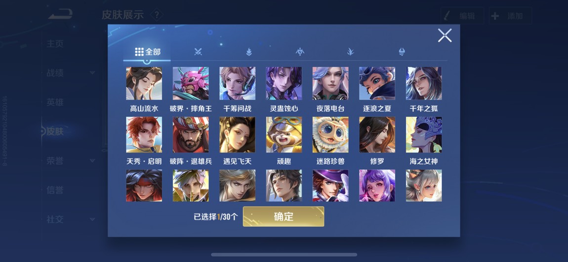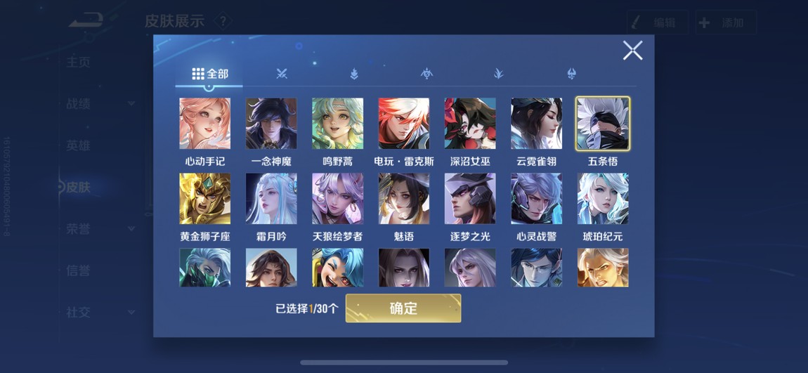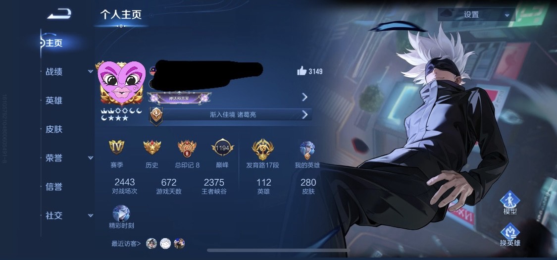 175等 皮膚280 1咒術 2典藏 孫策 馬可波羅 小橋 宮本 達摩限定 看圖吧 一堆皮膚 幾乎每個角色都有 絕對夠玩了 還有一個天幕
