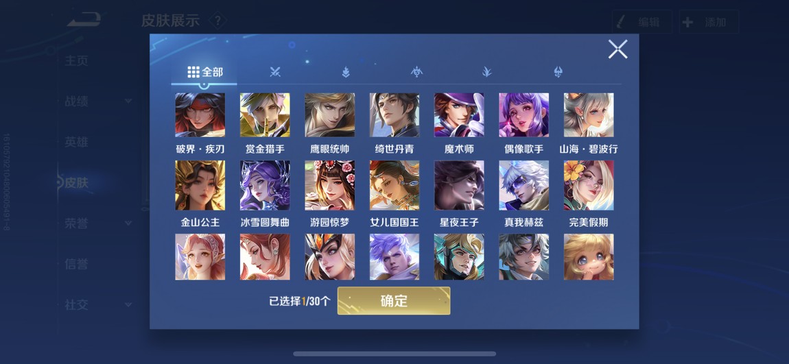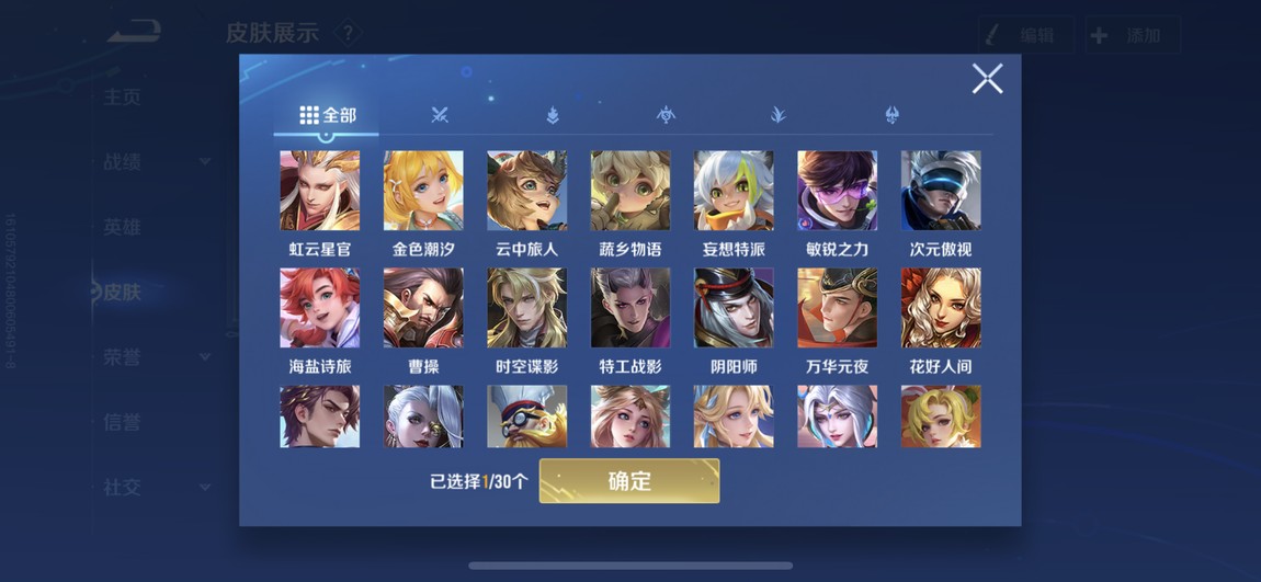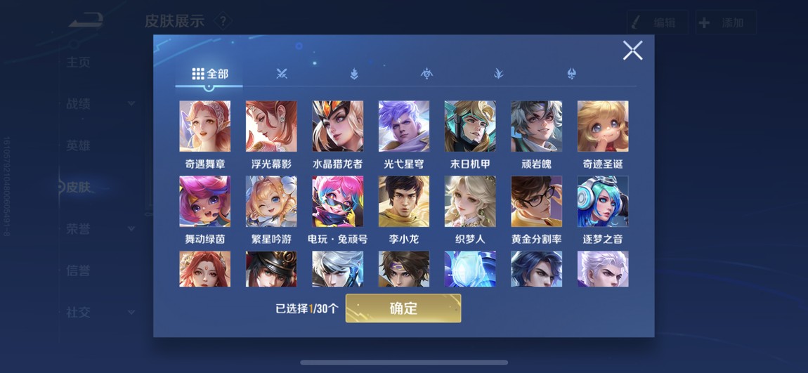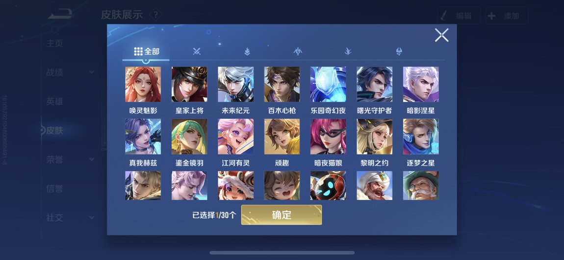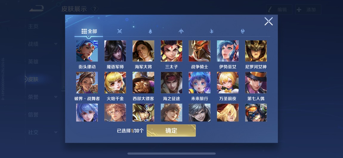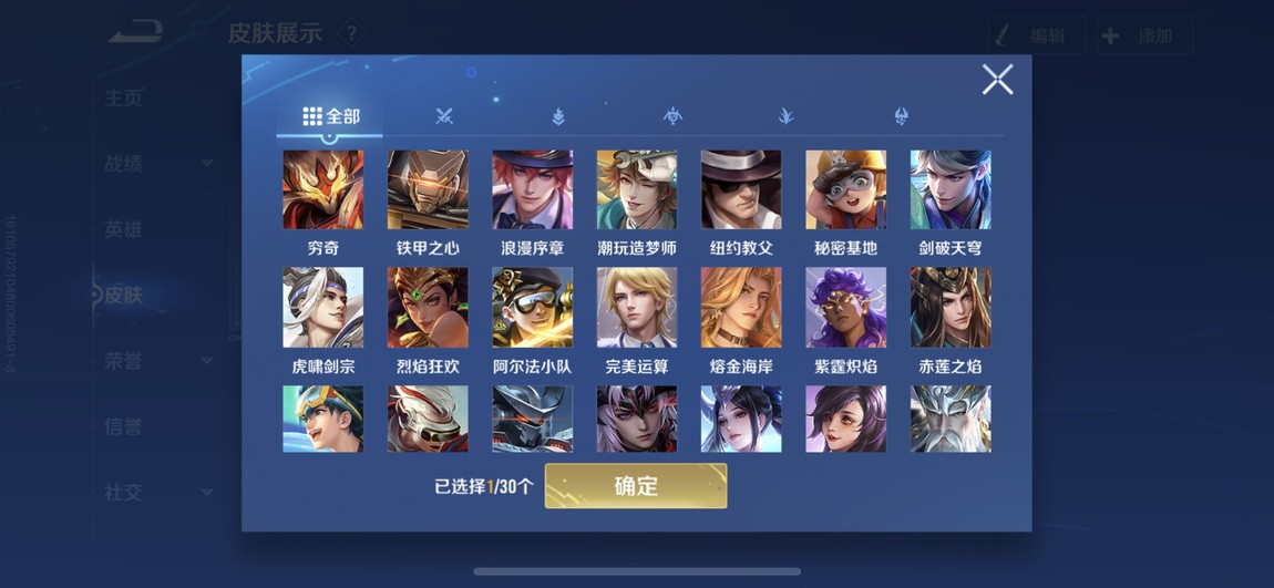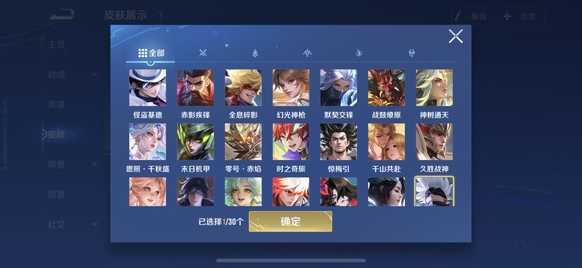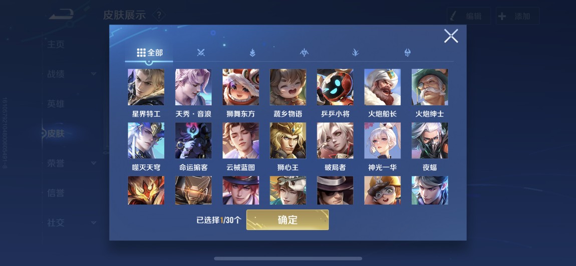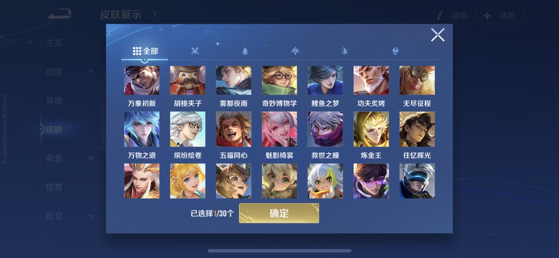 175等 皮膚280 1咒術 2典藏 孫策 馬可波羅 小橋 宮本 達摩限定 看圖吧 一堆皮膚 幾乎每個角色都有 絕對夠玩了 還有一個天幕