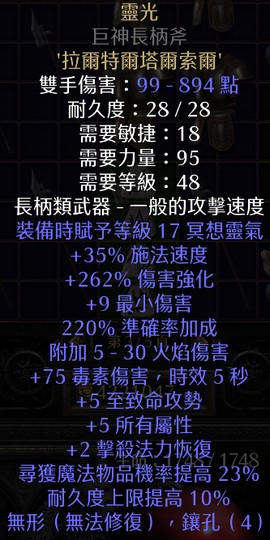 【禁忌賣場『非天梯】靈光_巨神長柄斧『頂靈氣/262增傷/5致命『迴響、術士