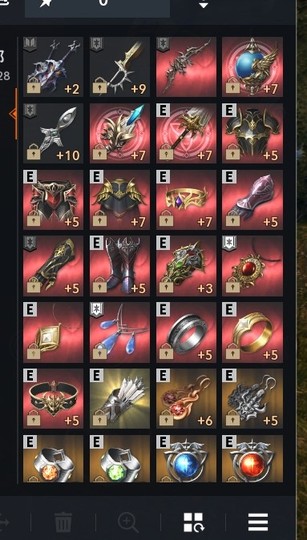 +6火龍耳環,+5地龍耳環,+5權威手鐲,+5加護手鐲,+6伊娃印章,+4帕格立歐印章,+3力量古文,+6武力襯衫