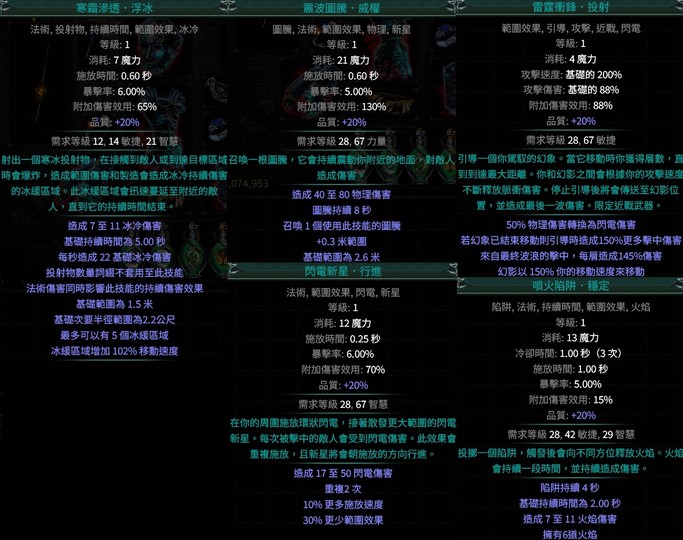 變異寶石寒霜滲透浮冰/震波圖騰威權/雷霆衝鋒.投射/閃電新星.行進/噴火陷阱穩定