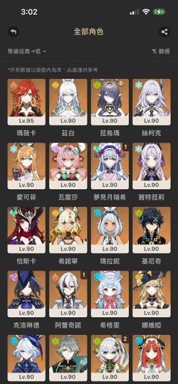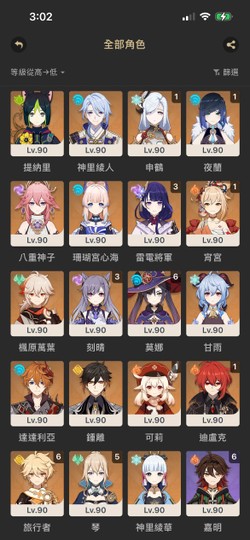 【男、60等、40金角、25金武】總共93金 3+2雷電將軍 2命草神 1命僕人 宵宮 夜蘭 申鶴 可莉