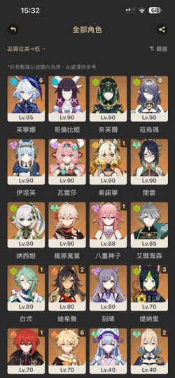 【男、60等、20金角、7金武】水神 6+1 芙寧娜:6+1(高命主C/輔助核心) 月綻放戰艦以湊齊 多抽
