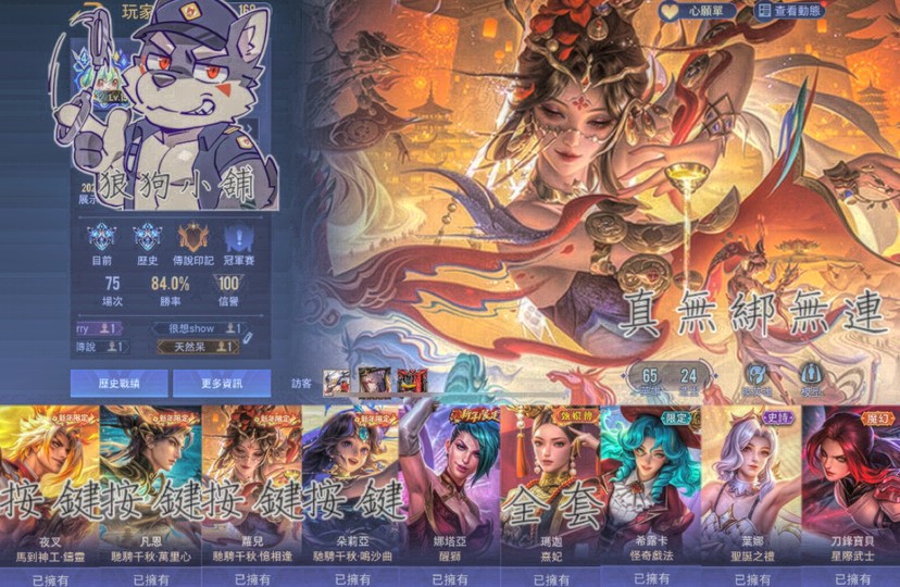 【Garena帳無綁無連、鑽石、V4、65英、24造】馬年夜叉 蘿爾 朵莉亞 凡恩 熹妃多英雄簡