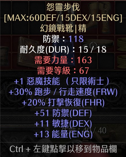 S13天梯 術士軍臨 +1邪異/+1惡魔 怨靈步伐 幻鏡戰靴