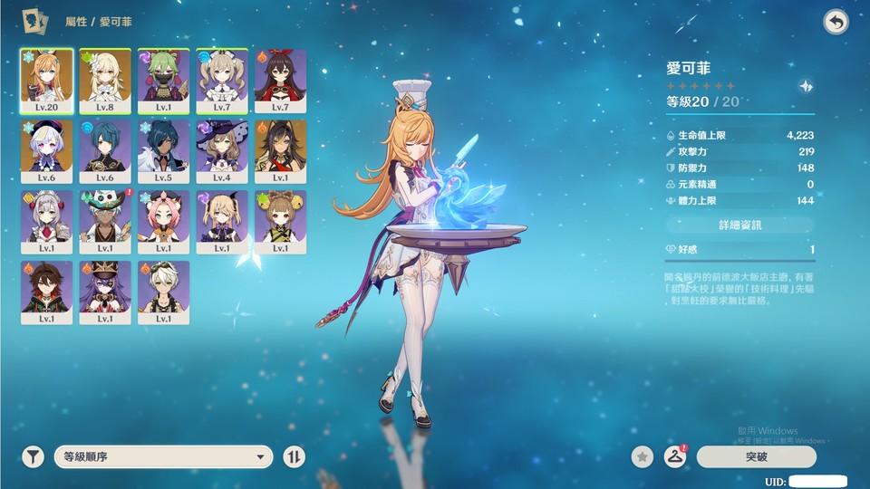 【初始號】等級12 愛可菲 + 2381原石讓您10抽雙金備戰新體系