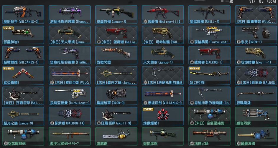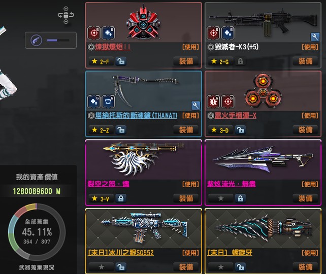 這帳號只求有緣人帶走 3史詩 多王牌武器 兔神 烈空 燼 多末日武器以及經典槍枝