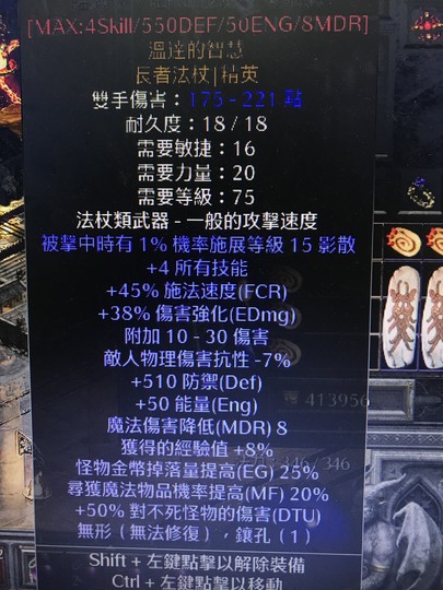非天梯DLC 3頂詞綴 無形4技經驗杖 已鑲物理珠寶