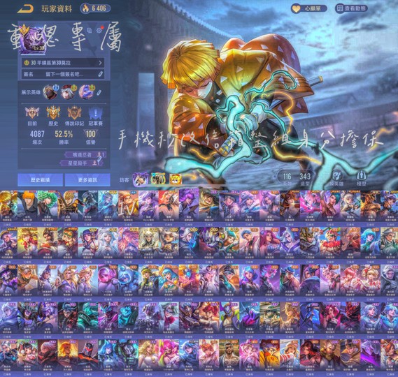 【Garena帳有綁定、星耀、V8、116英、343造】善逸 龍卷 傑諾斯 奧特曼 外送 多直購盛典