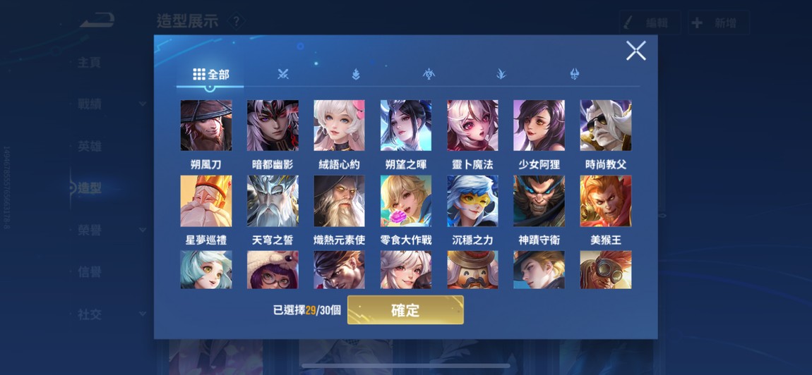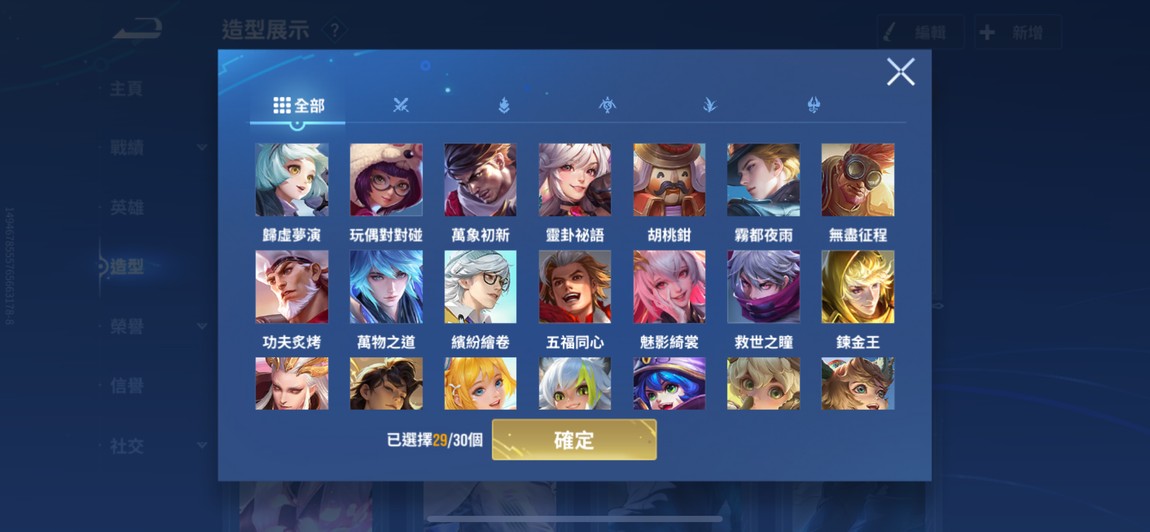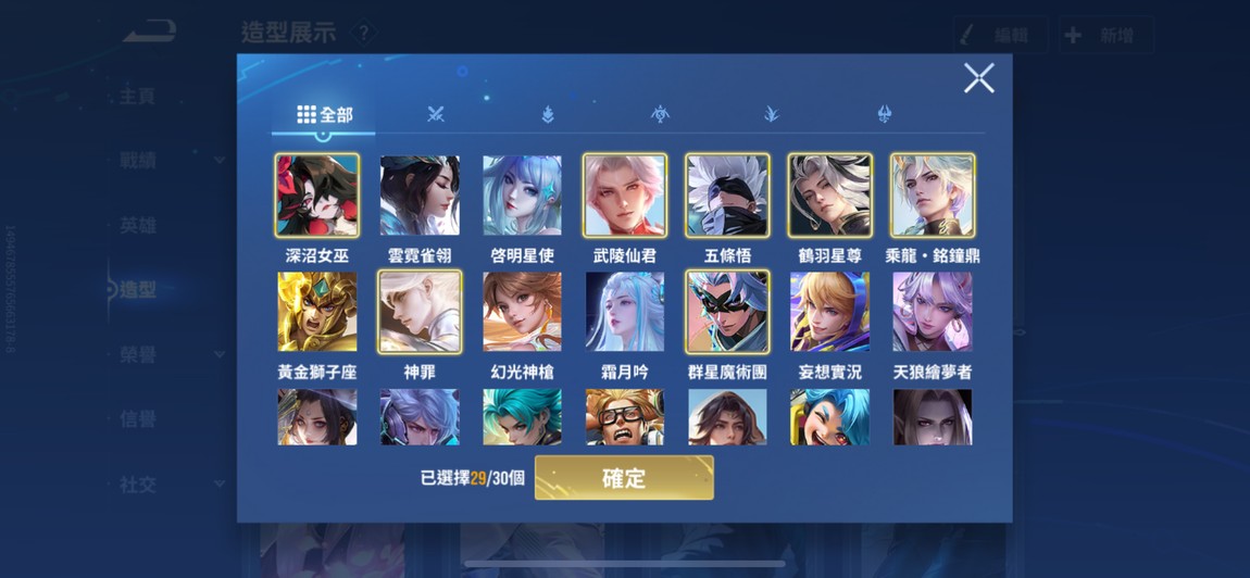 【148等】王者榮耀國際服貴族v8●頂級325造型多絕版聯動大耳狗冰雪奇緣死神柯南咒術五條悟