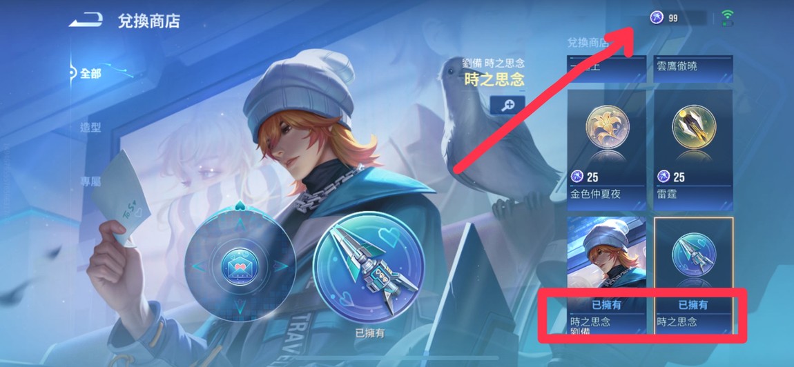 榮耀水晶還有兩顆,可兌換自己心儀的造型