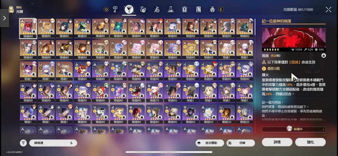 【女、70等、45金角、28金專】總計68金(常駐和送的不算數)、忘歸人6+1、阿格萊雅6+5,星期日6+1
