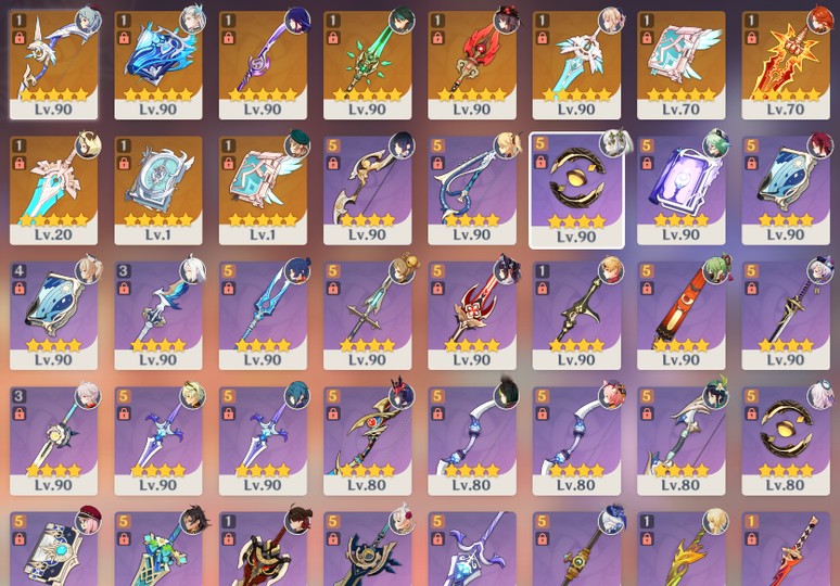 【男、60等、24金角、11金武】亞服60等男角/滿命夜蘭及其他五星