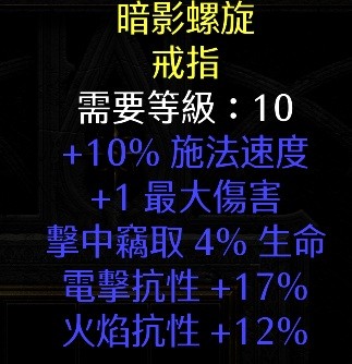 黃戒指:10高施/吸4命/17電抗/12火抗/1大傷