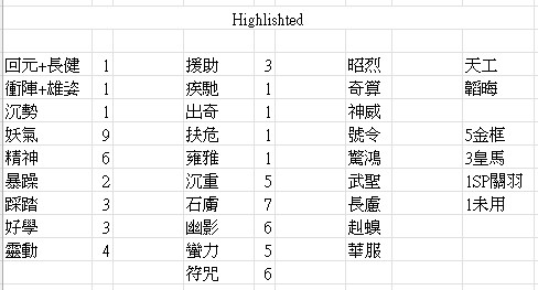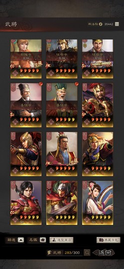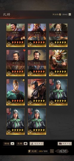 呂布1 無雙呂妹3張角6龐統4郝昭6滿寵6舊周瑜4甘寧1星彩2魏延1關興1凌銃6孫權1馬忠1SP孫堅2SP月英3姜維5SP董1甄姬2陳宮6王異2袁術2