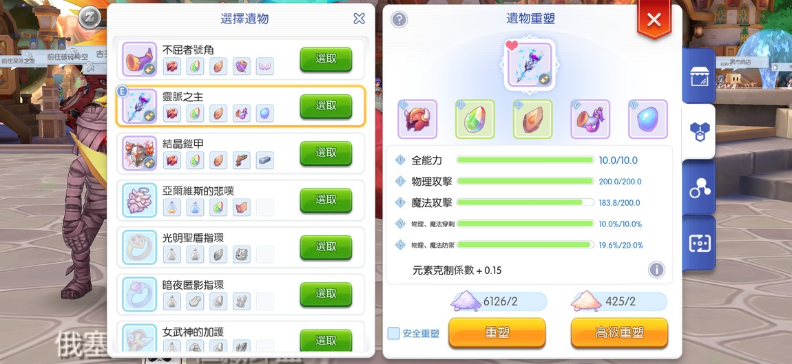 萃取:15易燃、15修矛、15柱槍、壞鎚、迪甲、隕甲