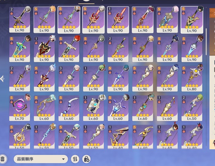 大多0+0 但武器皆有入手下位替代 都練度完整 深淵 巨詩都能輕鬆過 幽境危戰都能過難度5 皆附圖