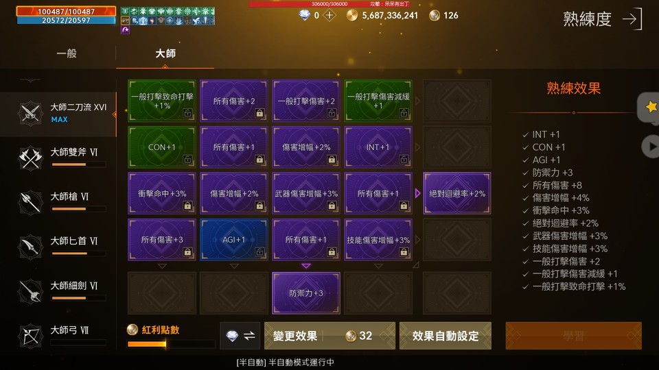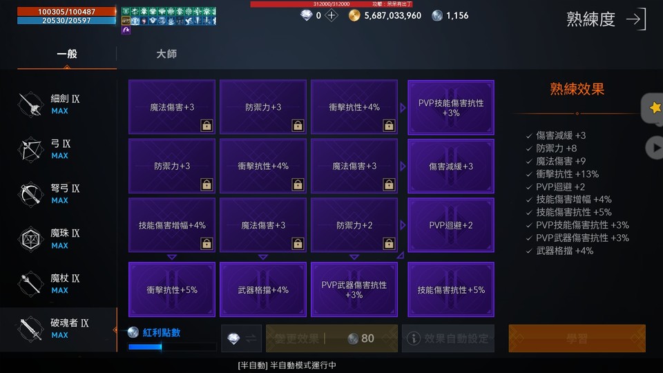 ★等級:90等67%★收藏:總70.02%★熟練度:破魂紫盤(衝抗13),大師全開紫,另雙刀職滿未洗