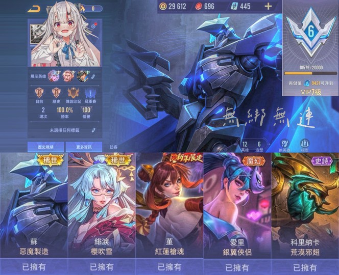 【Garena帳無綁無連、青銅、V6、12英、6造】青銅百勝簡 蘇惡魔 緋淚櫻吹雪 菫紅蓮 愛里銀翼 點卷400